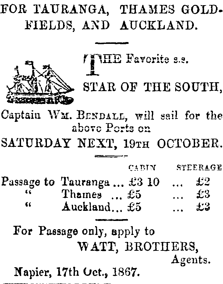 The Hawkes Bay Herald notes that the Star of the South sails this day for the “new El Dorado.”